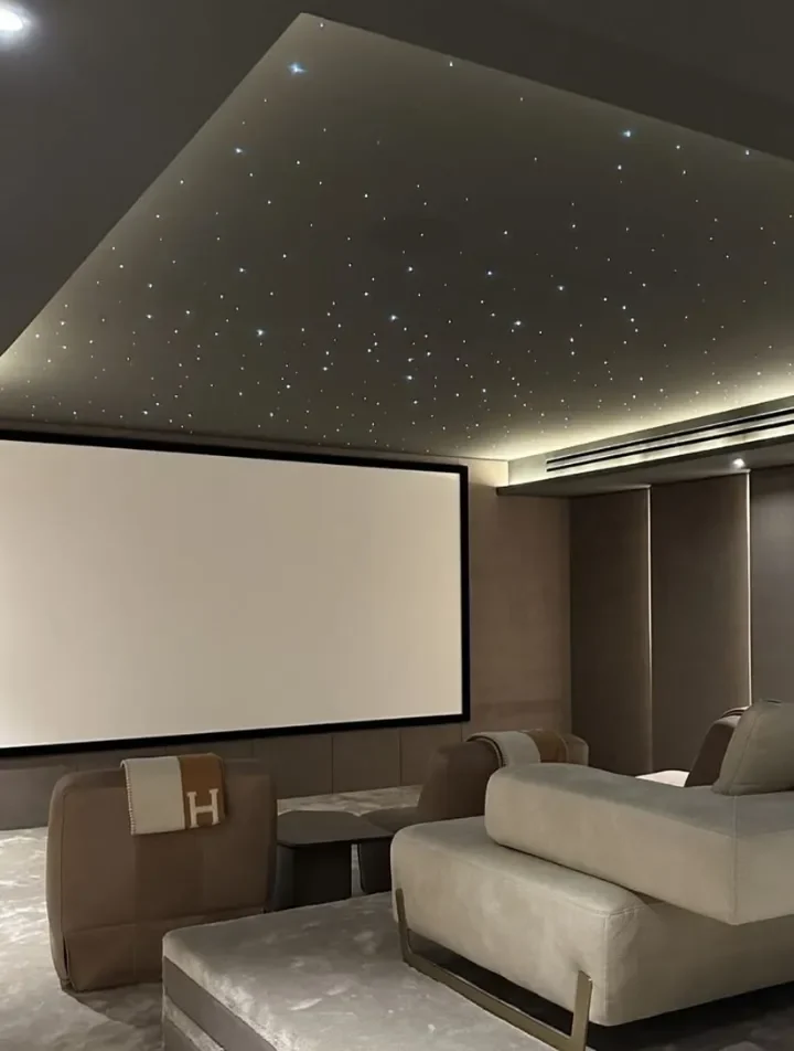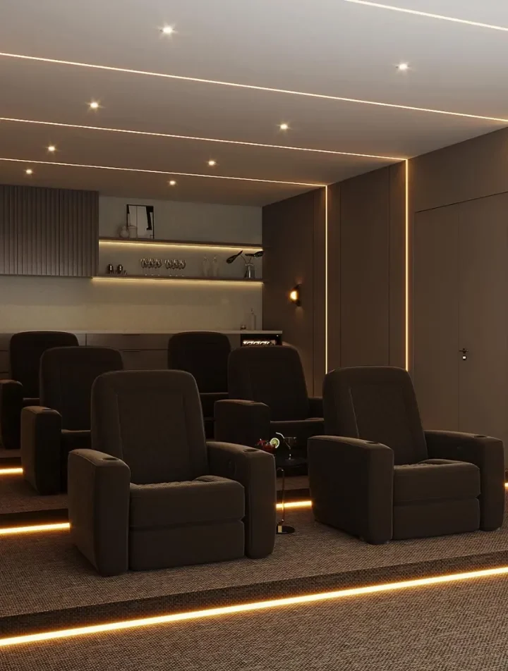 We offer modern lighting options that create the perfect mood for any cinema or living space, from soft ambient light to full smart automation.