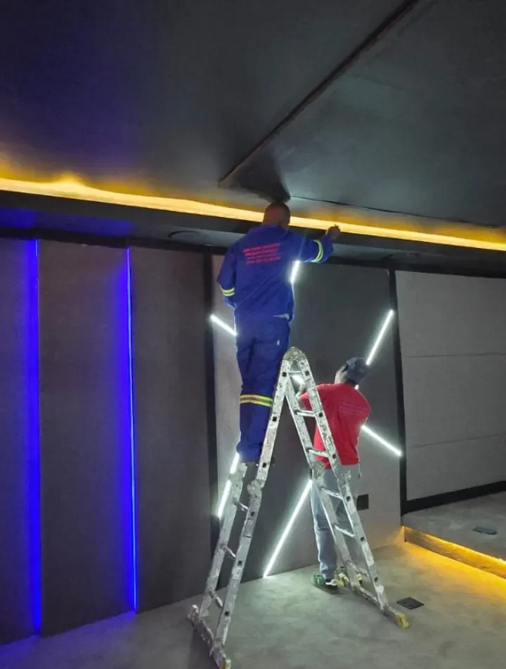 We make your cinema sound professional and immersive. This includes analyzing room acoustics, installing acoustic panels, building soundproof walls, controlling vibrations with bass traps, and designing ceiling acoustics to give clear, balanced sound for every movie and game.